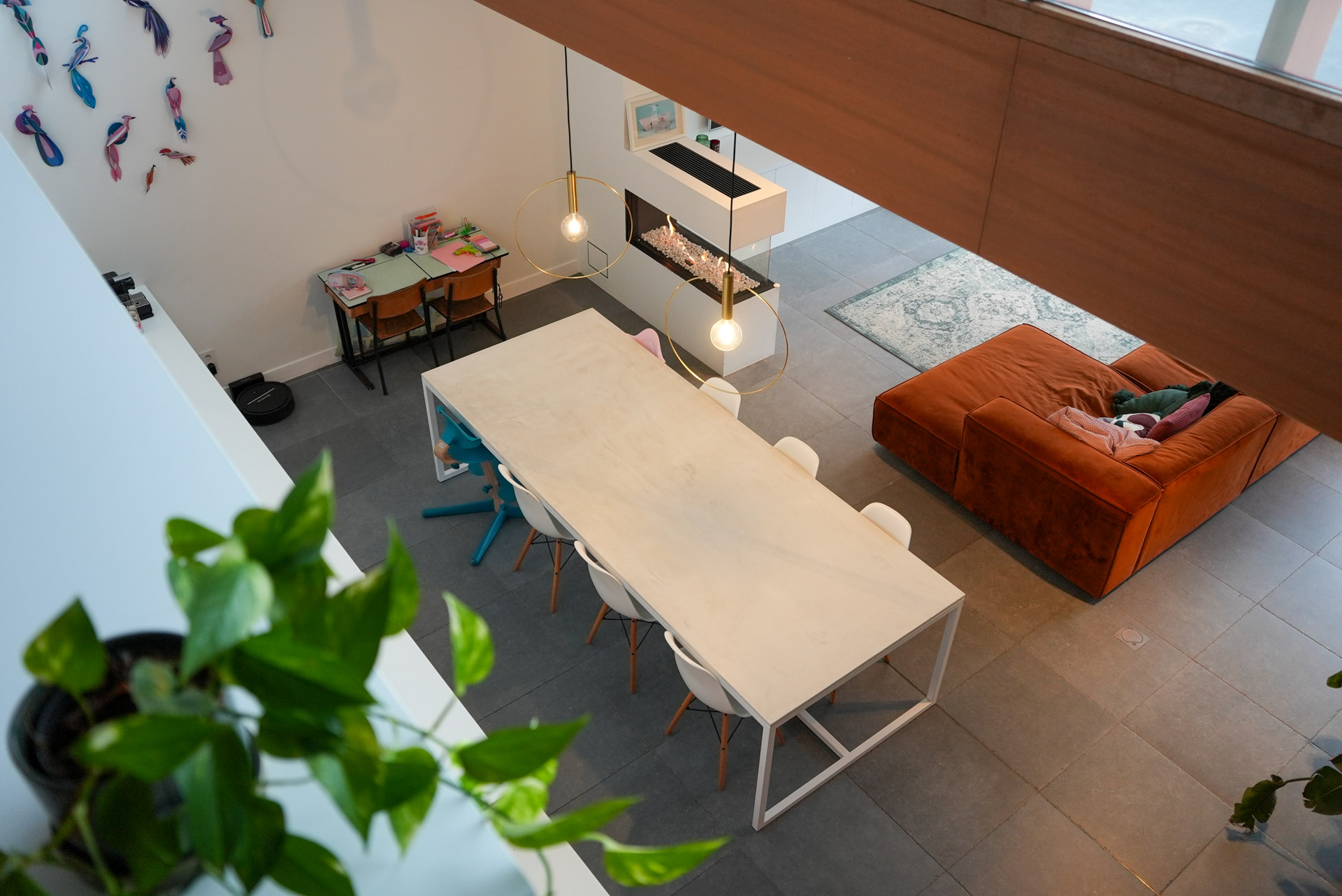 Deze volledig vernieuwde woning (2012) straalt warmte en gezelligheid uit, mede dankzij de bijzondere houtaccenten en de overvloed aan natuurlijk licht. De ruime leefruimte met vloerverwarming, een sfeervolle gashaard en veel kastruimte vormt het hart van het huis. De moderne, open keuken sluit hier naadloos op aan. Vanuit de zithoek heb je door een enorme glazen wand, die volledig open kan, een prachtig zicht op de tuin.